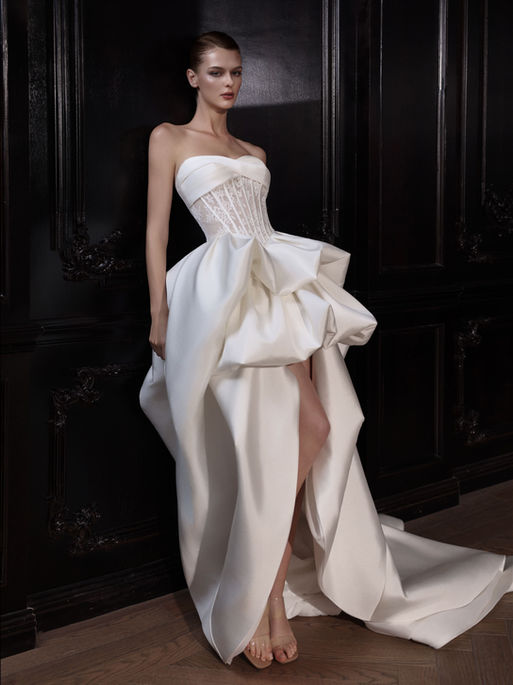 This collection embodies the quiet strength and luminous grace found in that climb: sculptural silhouettes intertwined with hand-crafted florals, gowns that bloom like living gardens and move with the rhythm of wind and light.